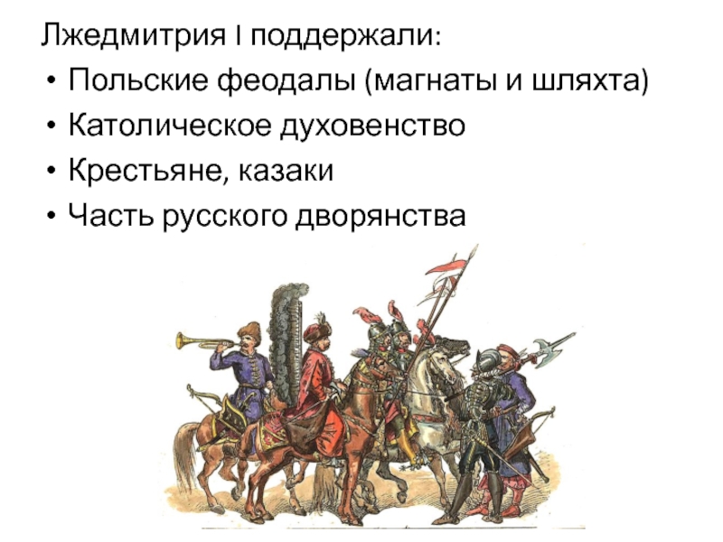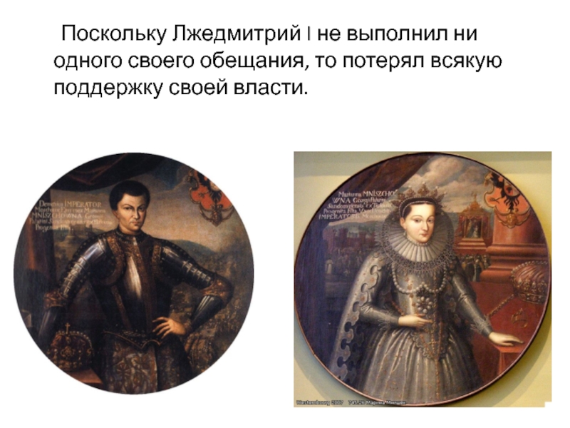 Слайд 29 Поскольку Лжедмитрий I не выполнил ни одного своего обещания, то