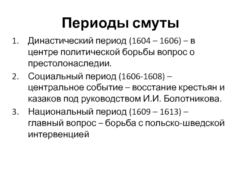 Национальный период (1609 – 1613) – главный вопрос – борьба с польско-шведской интервенцией