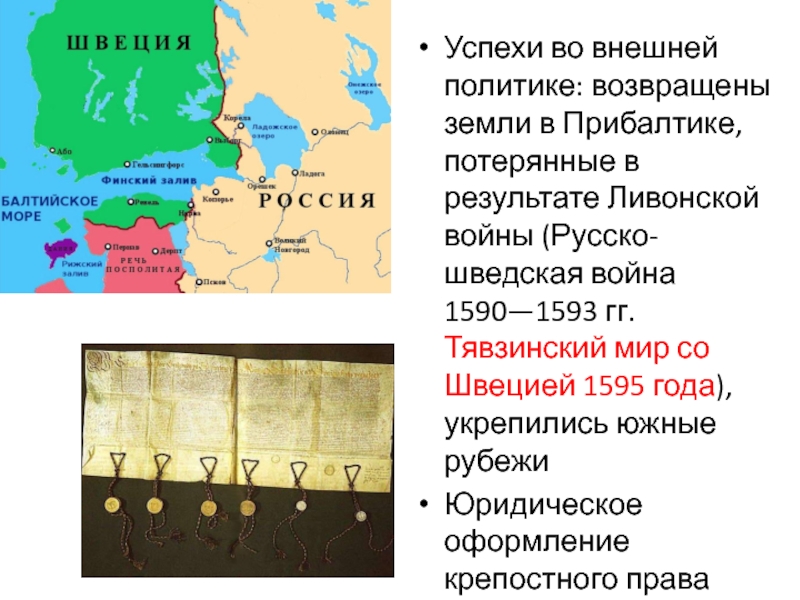 Слайд 12Успехи во внешней политике: возвращены земли в Прибалтике, потерянные в