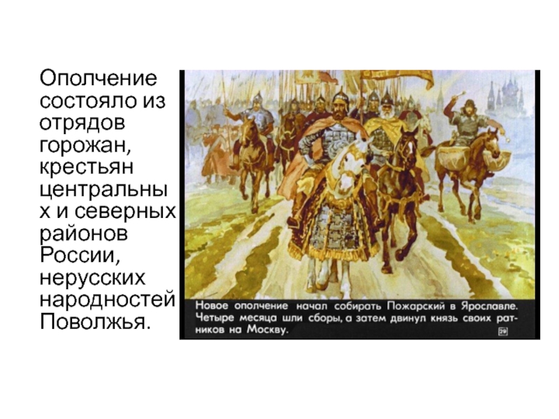 Слайд 64 Ополчение состояло из отрядов горожан, крестьян центральных и