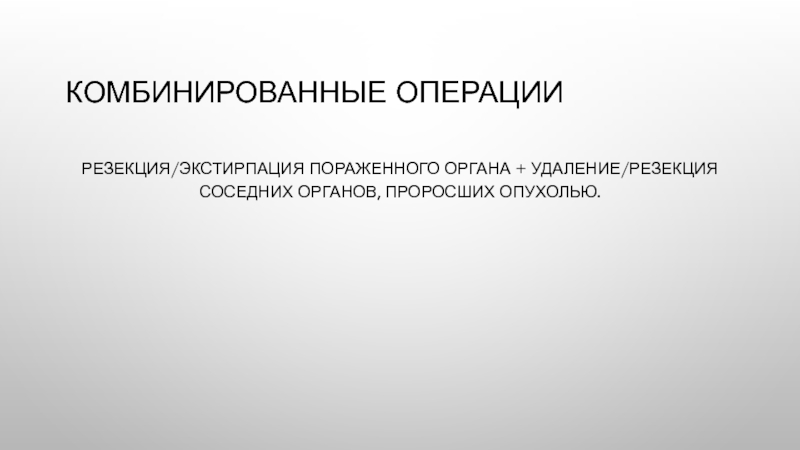 Комбинированные операции Резекция/экстирпация пораженного органа + удаление/резекция соседних органов, проросших опухолью.