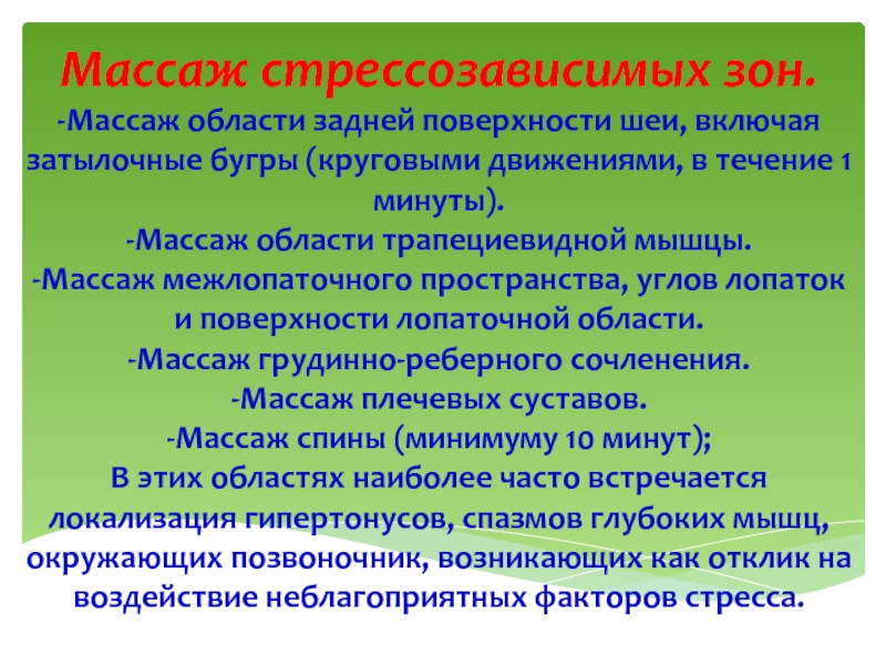 -Массаж межлопаточного пространства, углов лопаток и поверхности лопаточной области.