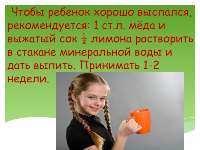 Чтобы ребенок хорошо выспался, рекомендуется: 1 ст.л. мёда и выжатый