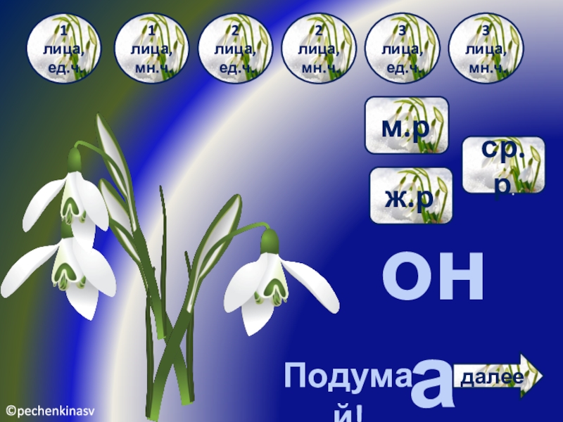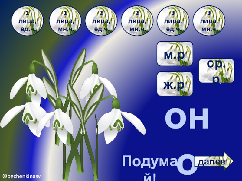 3 лица, мн.ч.он1 лица, ед.ч.1 лица, мн.ч.2 лица, ед.ч.2 лица, мн.ч.3 лица, ед.ч.далееПодумай!ж.р.ср.р.м.р.©pechenkinasv