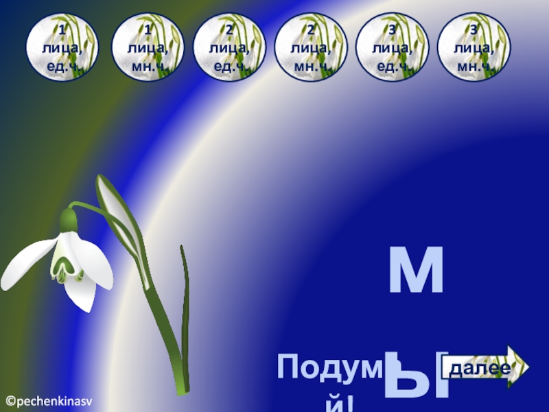 мы1 лица, ед.ч.1 лица, мн.ч.2 лица, ед.ч.2 лица, мн.ч.3 лица, ед.ч.3 лица, мн.ч.далееПодумай!©pechenkinasv
