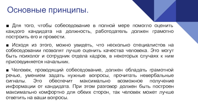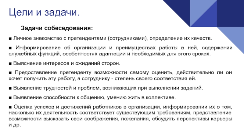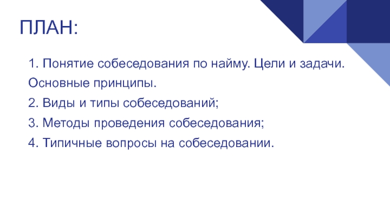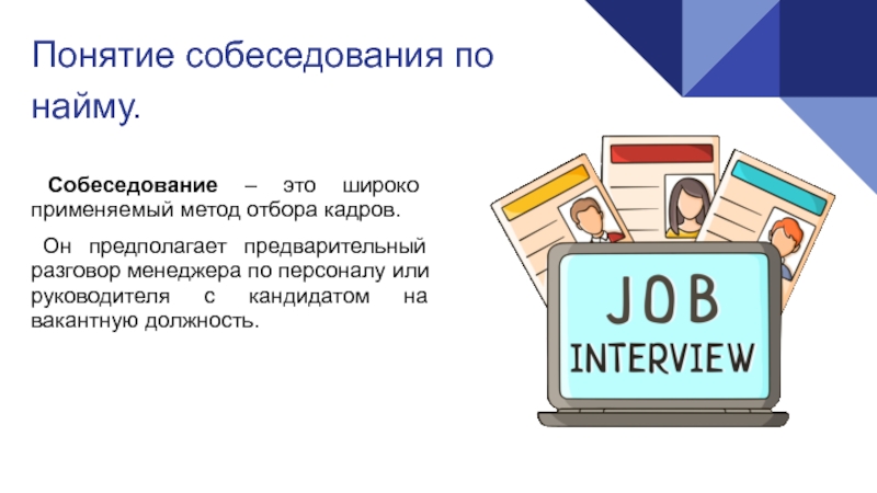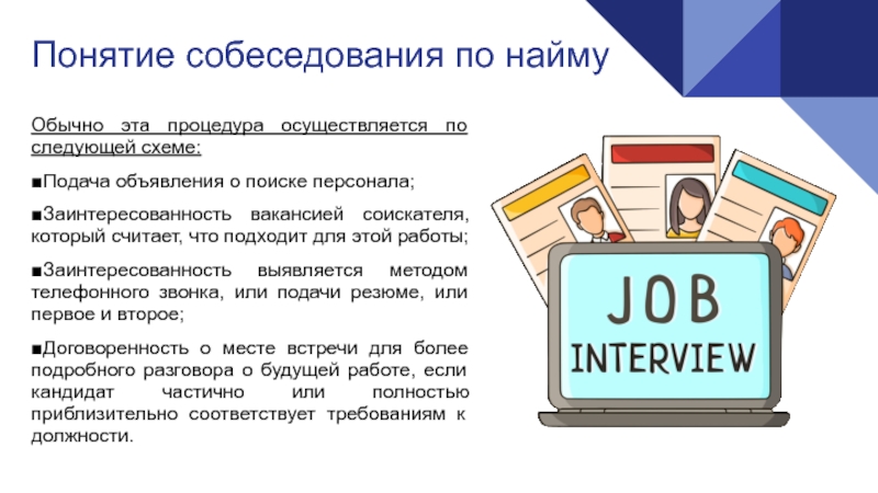 Слайд 3Понятие собеседования по найму. Цели и задачи. Основные принципы.