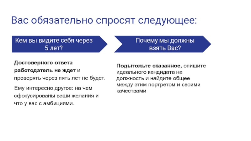 Подытожьте сказанное, опишите идеального кандидата на должность и найдите общее между этим портретом и своими качествами