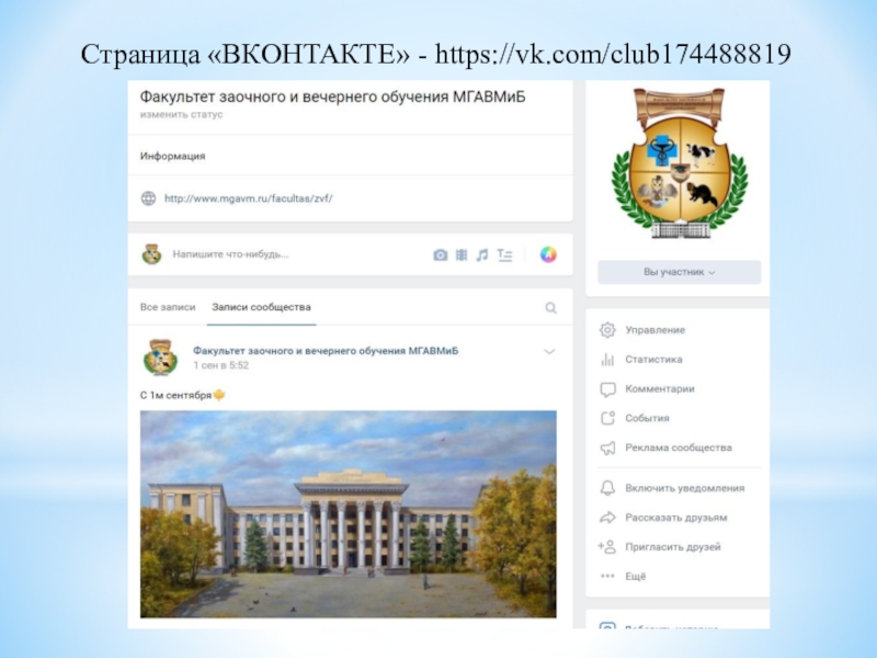 Слайд 13Страница «ВКОНТАКТЕ» - https://vk.com/club174488819