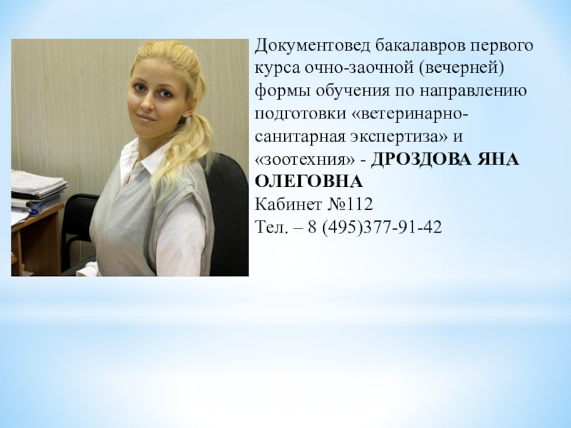 Слайд 9Документовед студентов первого курса очно-заочной (вечерней) формы обучения по специальности