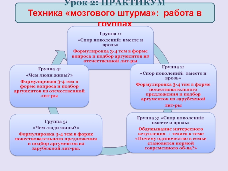 предлагается блок, состоящий из пяти тем, из которых надо выбрать