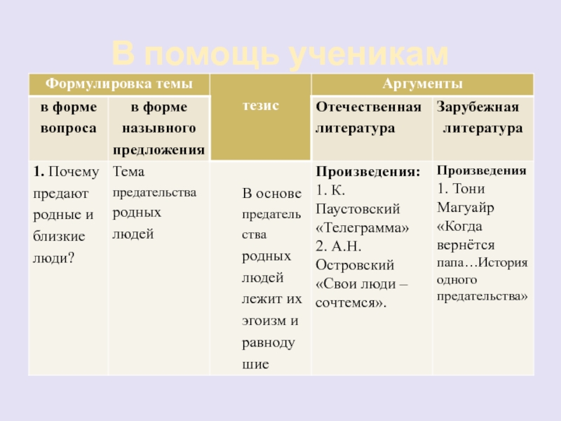 1. Проверка домашнего задания и коллективное заполнение таблицы.