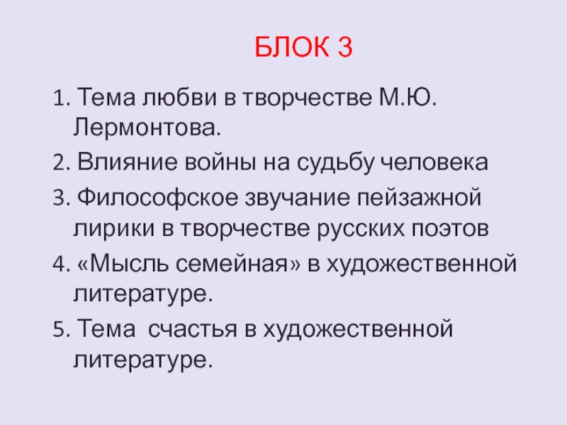 1. Тема любви в творчестве М.Ю.Лермонтова.