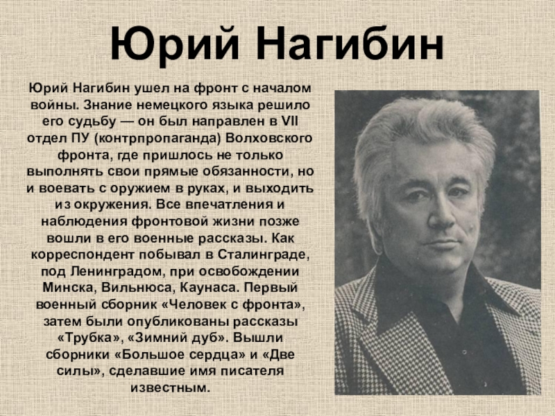 Писатели-фронтовики – это целое поколение мужественных, совестливых, многое испытавших, одаренных личностей, перенесших военные и послевоенные невзгоды.