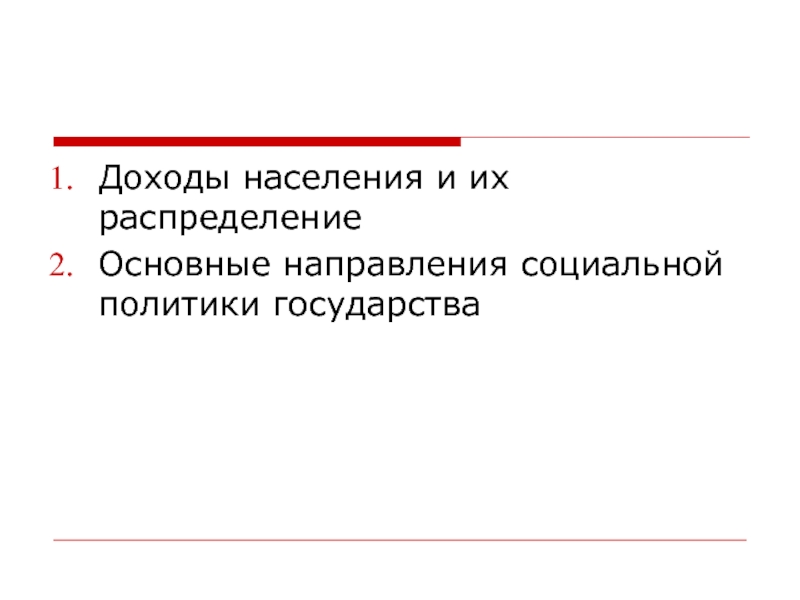 Доходы населения и их распределениеОсновные направления социальной политики государства