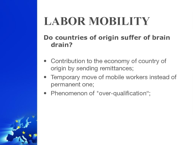 LABOR MOBILITYDo countries of origin suffer of brain drain?Contribution to the economy of country of origin by sending