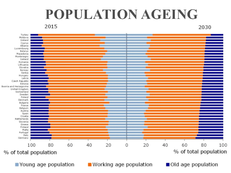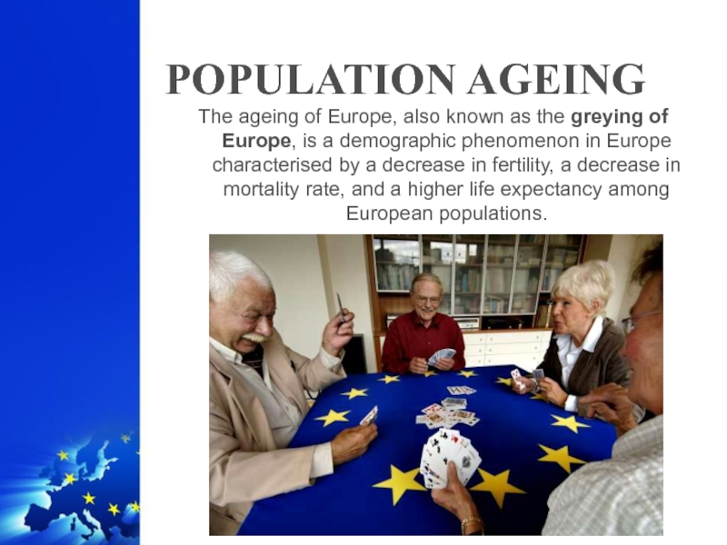 POPULATION AGEING  The ageing of Europe, also known as the greying of Europe, is a demographic