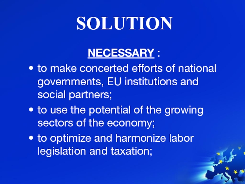 SOLUTIONNECESSARY :to make concerted efforts of national governments, EU institutions and social partners;to use the potential of