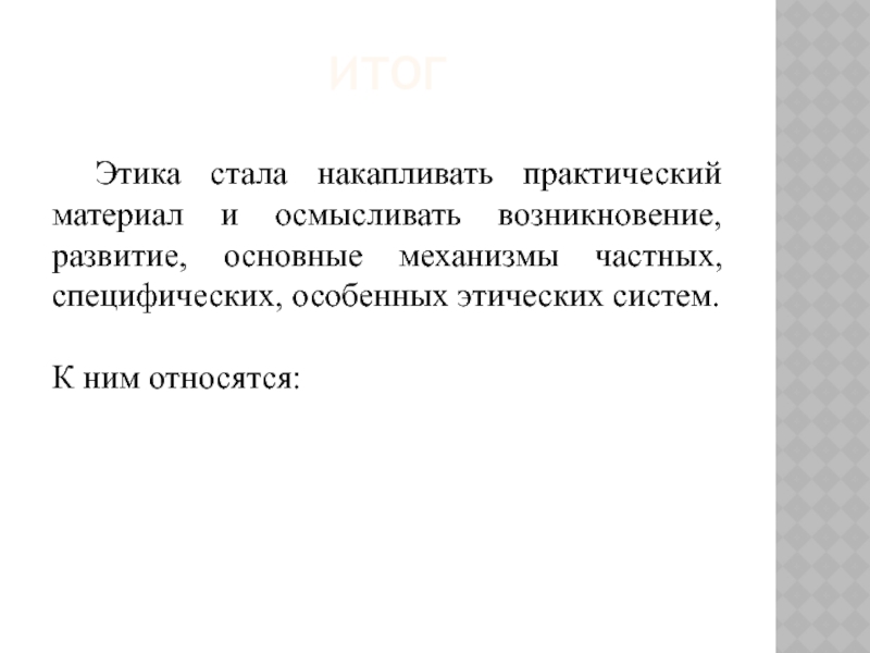 Этика стала накапливать практический материал и осмысливать возникновение, развитие, основные