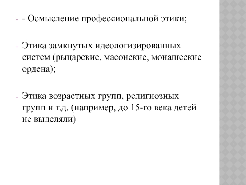 Этика возрастных групп, религиозных групп и т.д. (например, до