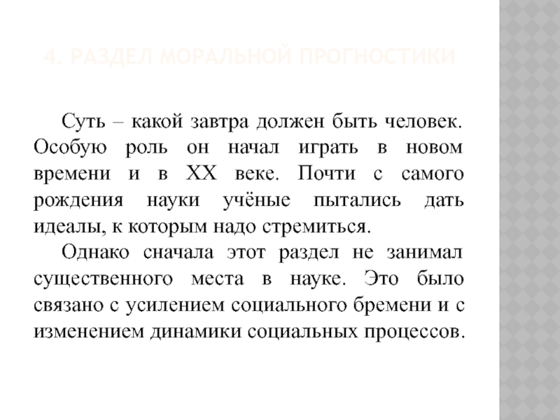 Однако сначала этот раздел не занимал существенного места в науке. Это было связано с усилением социального бремени и с изменением динамики социальных процессов.