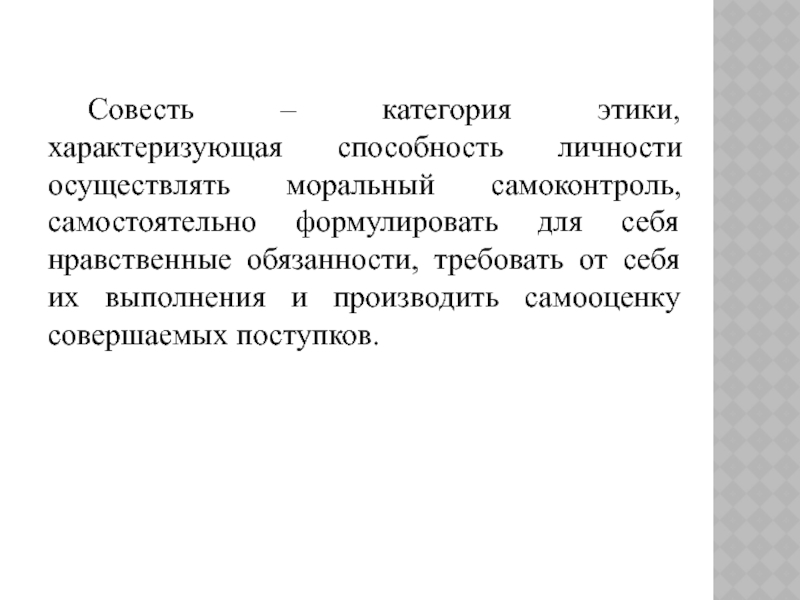 Совесть – категория этики, характеризующая способность личности осуществлять моральный самоконтроль,