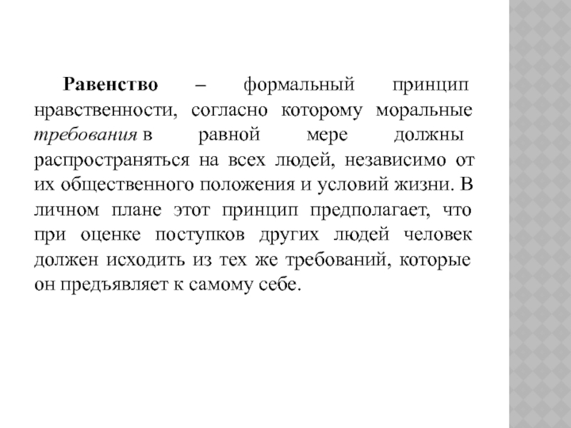 Равенство – формальный принцип нравственности, согласно которому моральные требования в равной