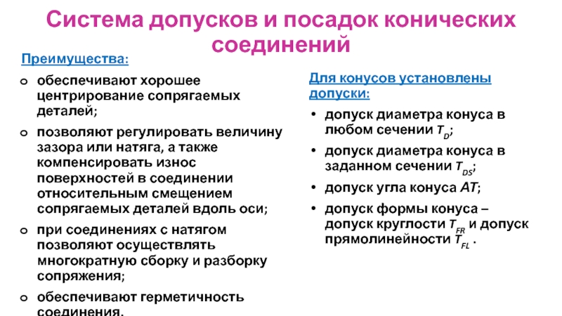 допуск формы конуса – допуск круглости TFR и допуск прямолинейности TFL .
