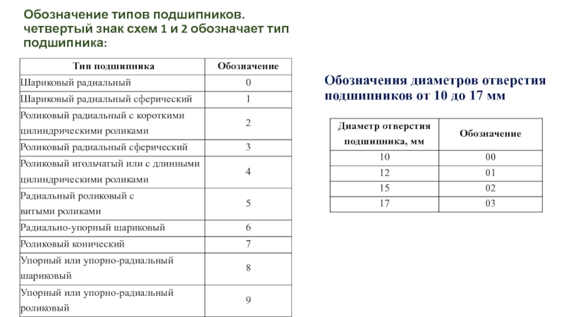 - для подшипников с диаметром отверстия 10 мм и более, кроме подшипников с диаметрами отверстия 22, 28, 32, 500 мм и более.