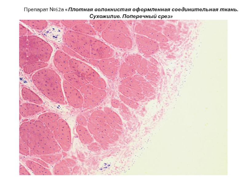 Слайд 29Препарат №62 «Плотная волокнистая оформленная соединительная ткань.