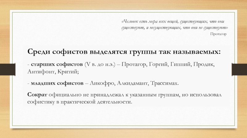 «Человек есть мера всех вещей, существующих, что они существуют, и несуществующих, что они не существуют»