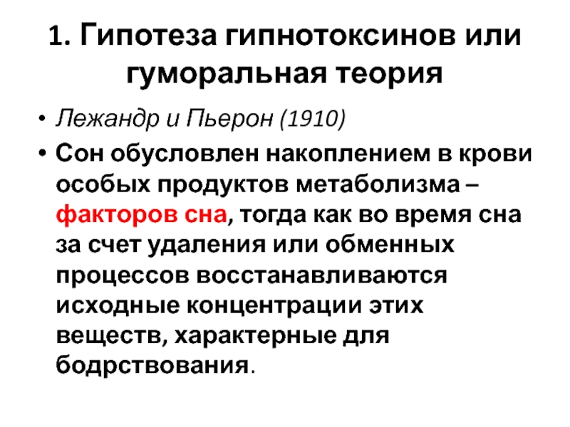 Слайд 121. Гипотеза гипнотоксинов или гуморальная теория