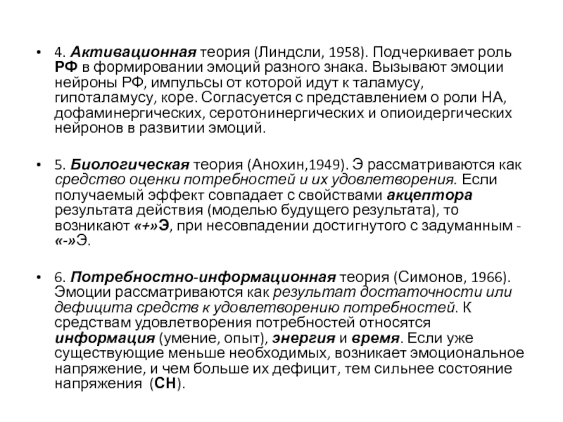 Слайд 484. Активационная теория (Линдсли, 1958). Подчеркивает роль РФ в формировании