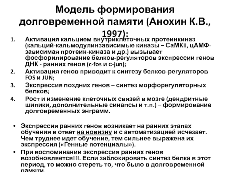 Слайд 36Модель формирования долговременной памяти (Анохин К.В., 1997):