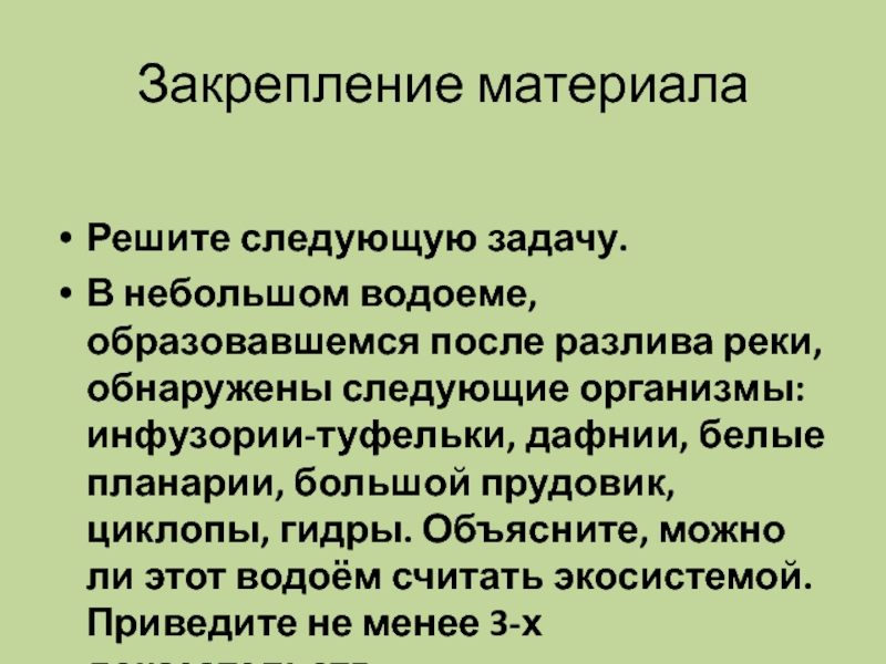 гидры. Объясните, можно ли этот водоём считать экосистемой. Приведите не менее 3-х доказательств.