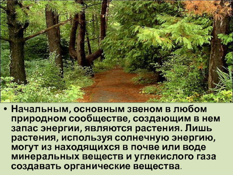 Слайд 10Начальным, основным звеном в любом природном сообществе, создающим в нем
