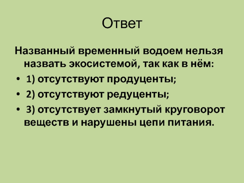 Названный временный водоем нельзя назвать экосистемой, так как в нём: