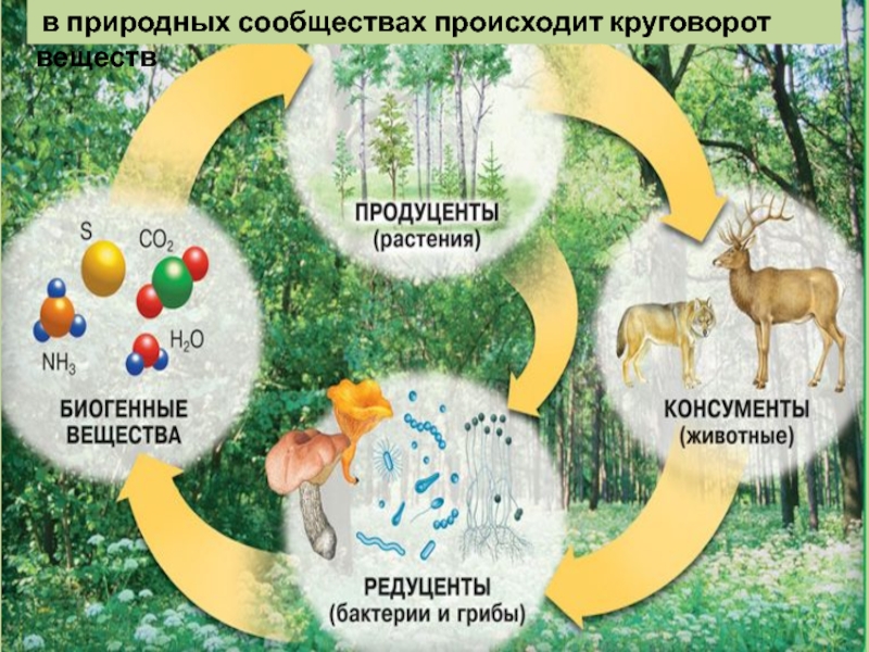 Слайд 15 в природных сообществах происходит круговорот веществ