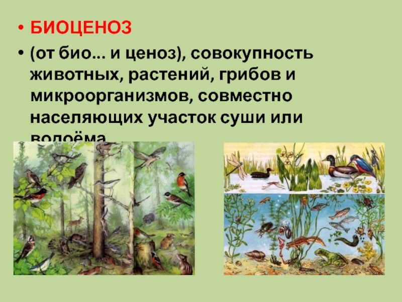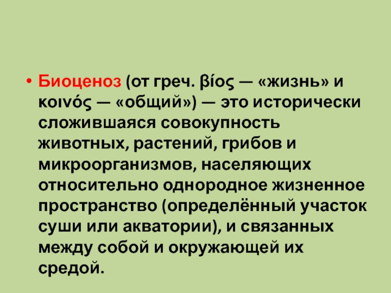 Слайд 4Биоценоз (от греч. βίος — «жизнь» и κοινός — «общий»)