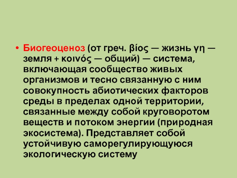 Слайд 6Биогеоценоз (от греч. βίος — жизнь γη — земля +