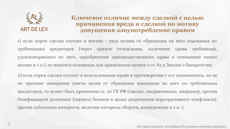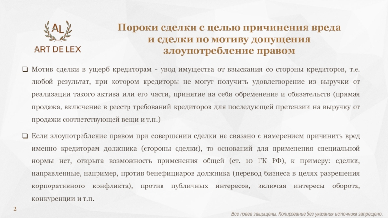 Пороки сделки с целью причинения вреда и сделки по мотиву допущения злоупотребление правом