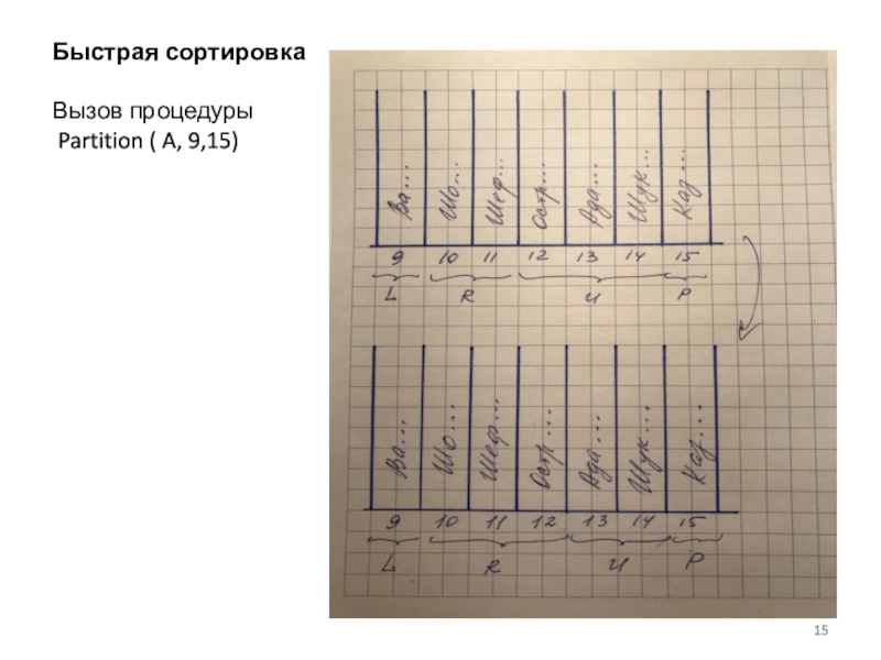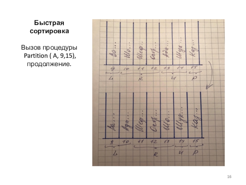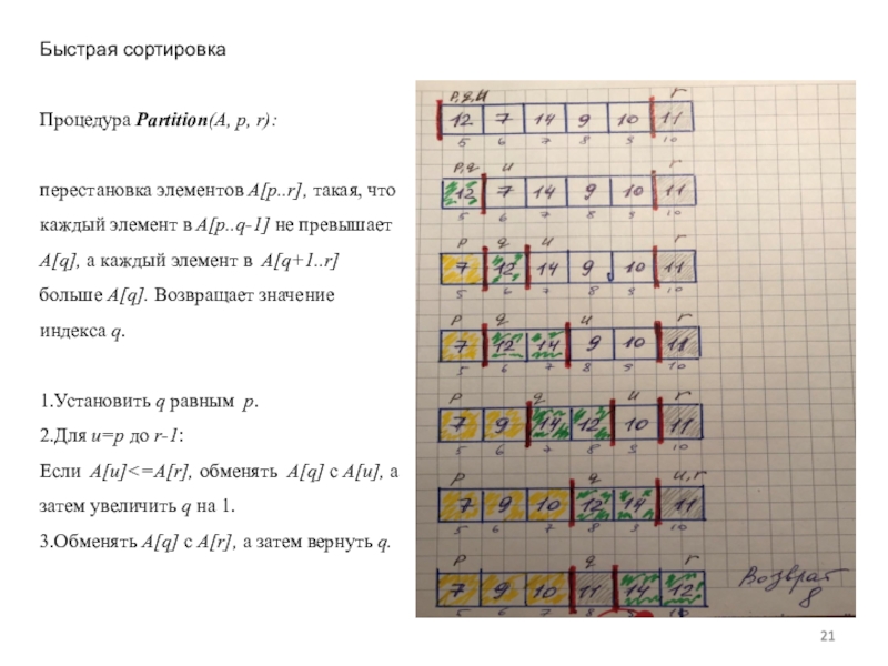 На предыдущем слайде(21) показано как работает процедура Partition с