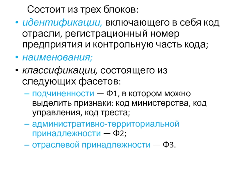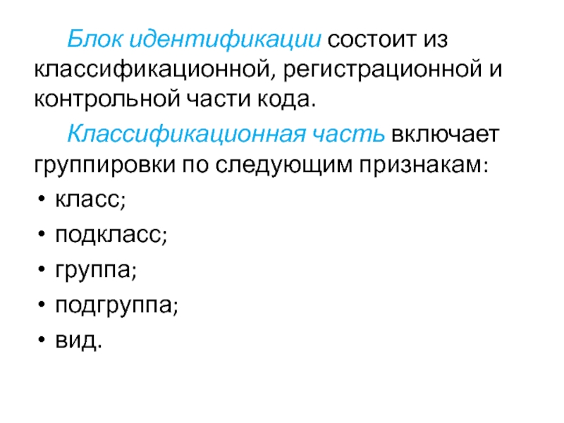 Слайд 39Блок идентификации состоит из классификационной, регистрационной и контрольной части кода.