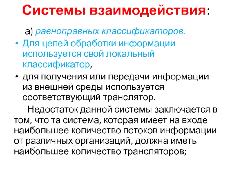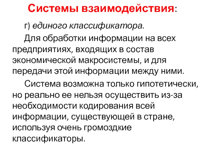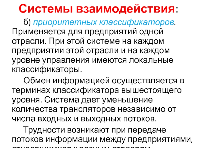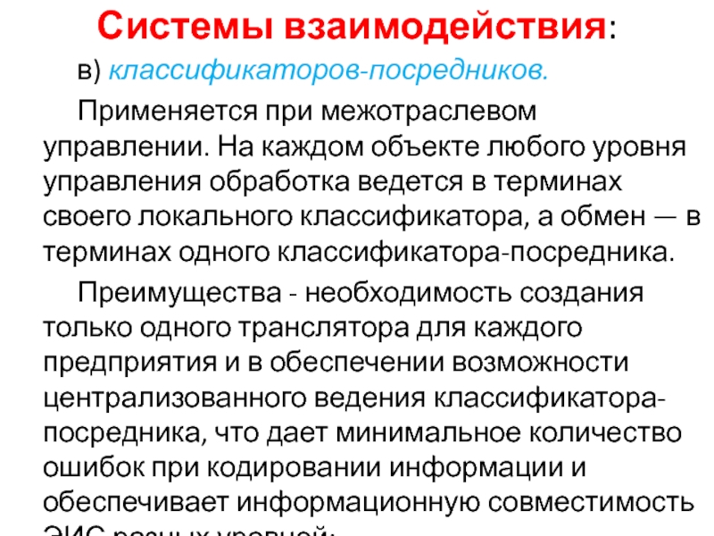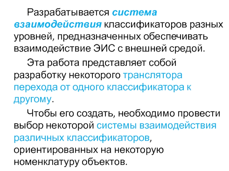 Слайд 18Разрабатывается система взаимодействия классификаторов разных уровней, предназначенных обеспечивать взаимодействие ЭИС