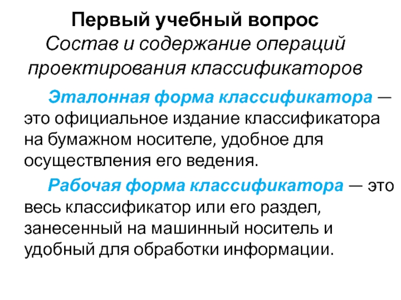 Рабочая форма классификатора — это весь классификатор или его раздел, занесенный на машинный носитель и удобный для обработки информации.