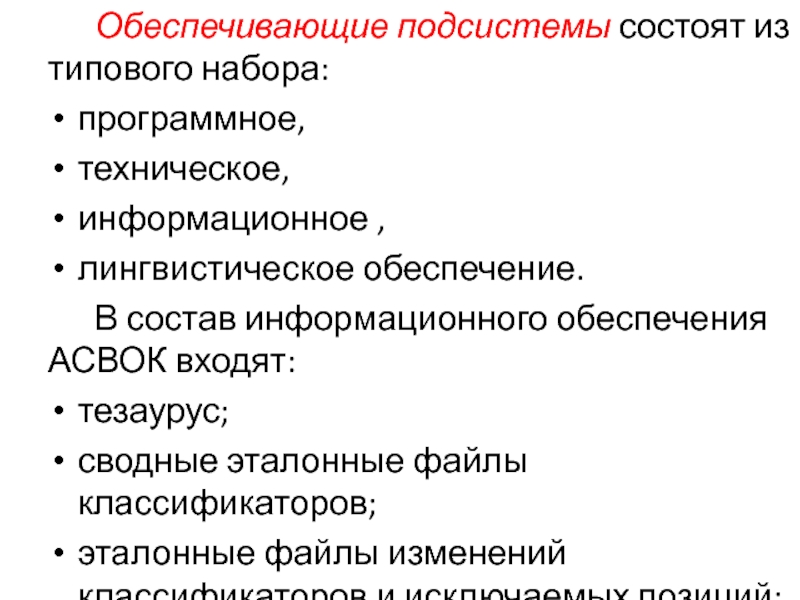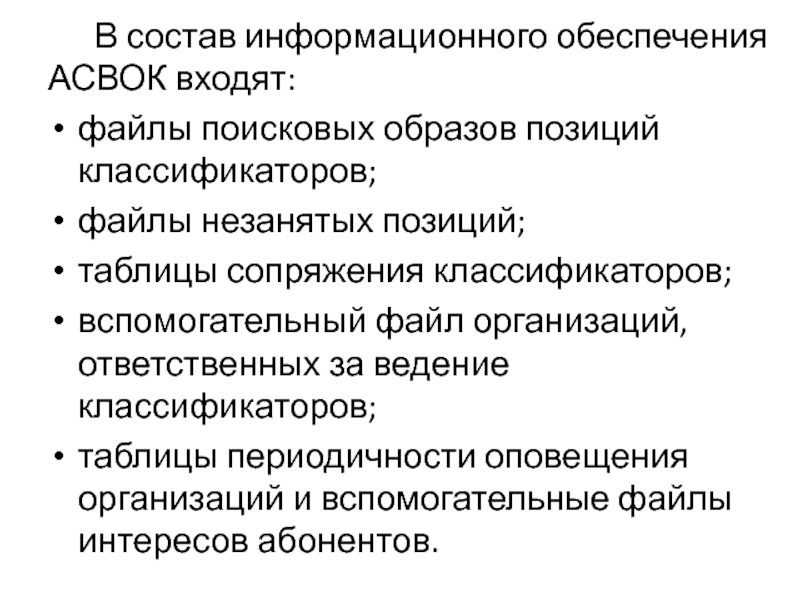 Слайд 47В состав информационного обеспечения АСВОК входят: