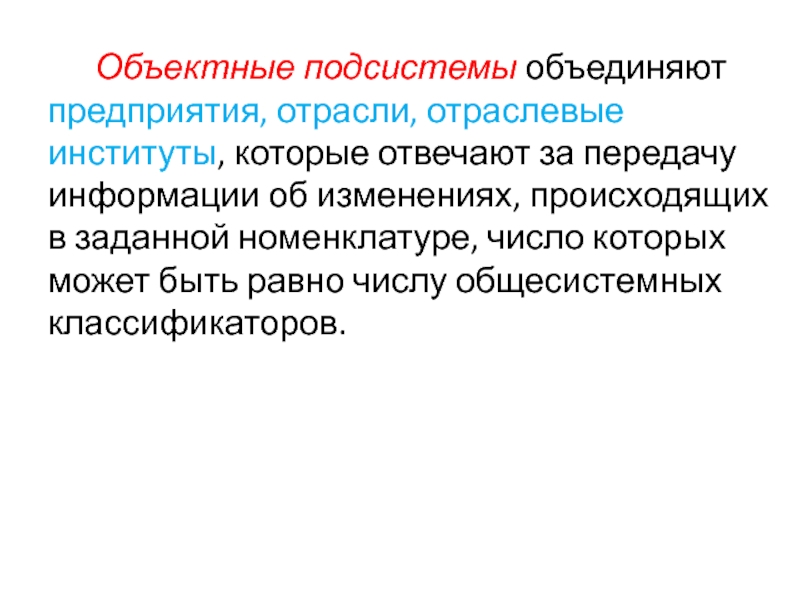 Слайд 44Объектные подсистемы объединяют предприятия, отрасли, отраслевые институты, которые отвечают за