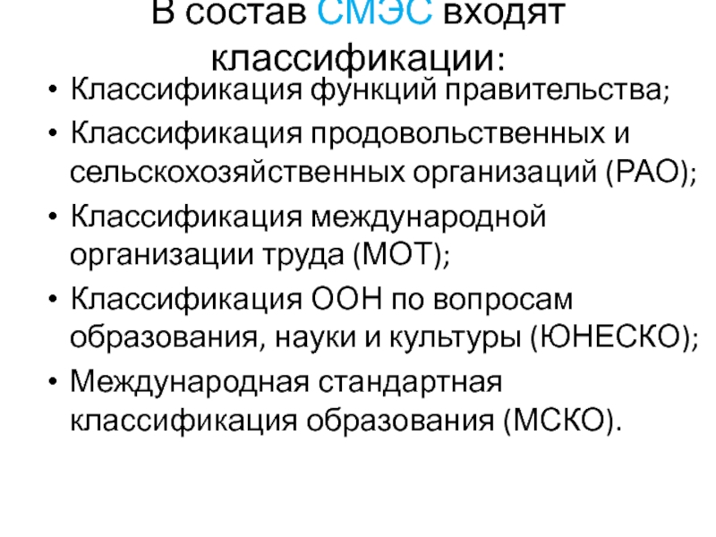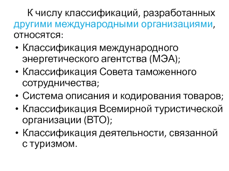 Слайд 10К числу классификаций, разработанных другими международными организациями, относятся: