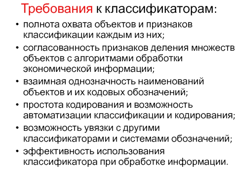 согласованность признаков деления множеств объектов с алгоритмами обработки экономической информации;