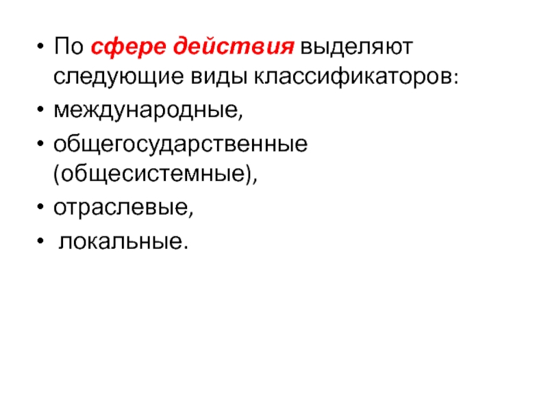 Слайд 6По сфере действия выделяют следующие виды классификаторов: