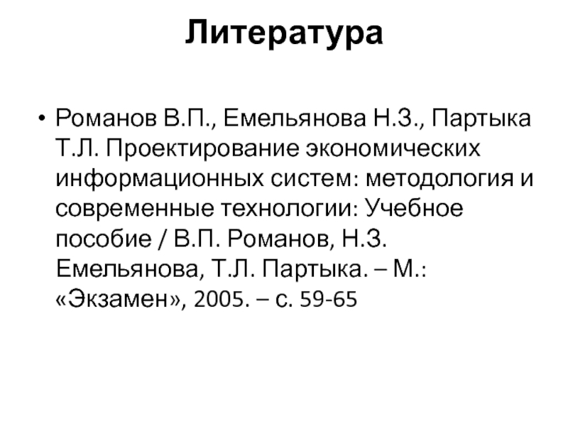 Романов В.П., Емельянова Н.З., Партыка Т.Л. Проектирование экономических информационных систем: